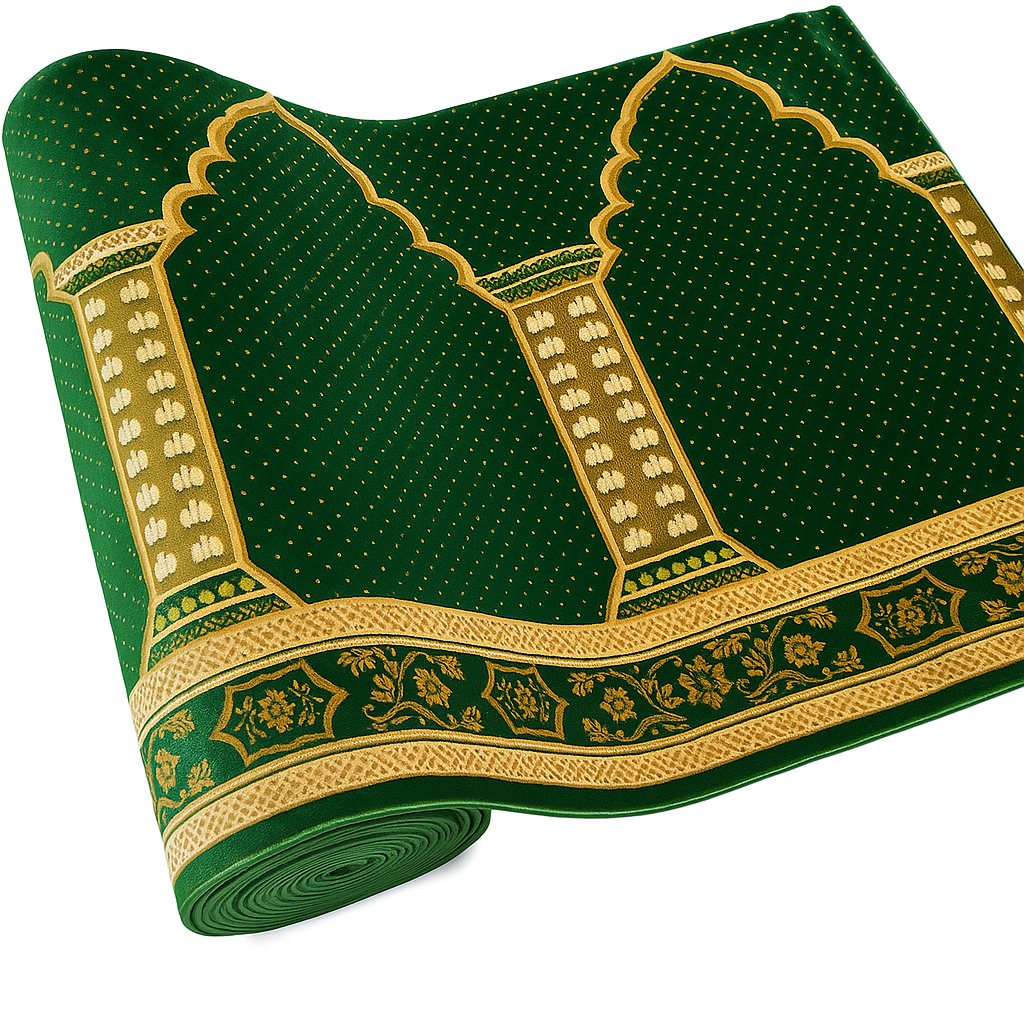 Ukuran: 120 x 600 cm, ideal untuk shalat berjamaah dengan barisan tertata rapi.