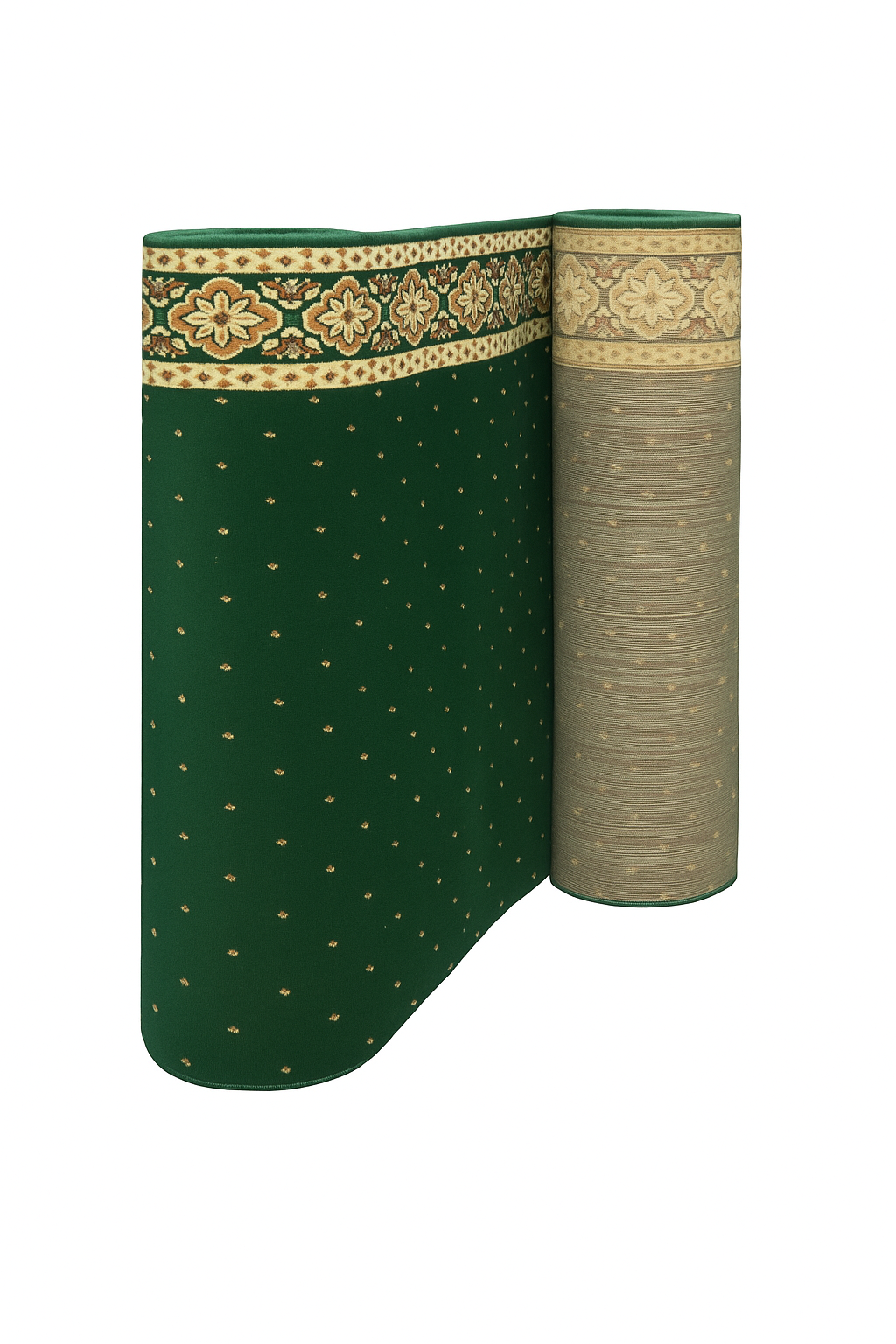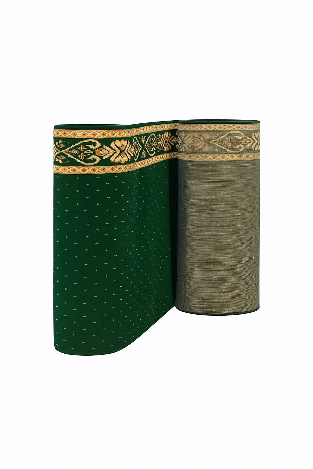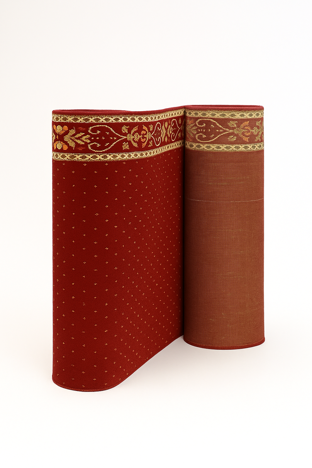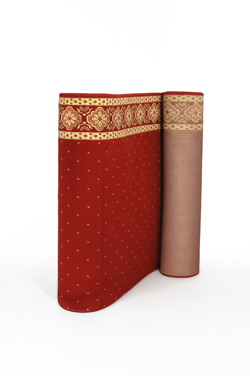 Ukuran 120 x 600 cm menjaga barisan shalat tetap rapi dan nyaman. Ketebalan 10 mm memberi rasa empuk saat sujud dan berdiri serta meredam tekanan lantai.