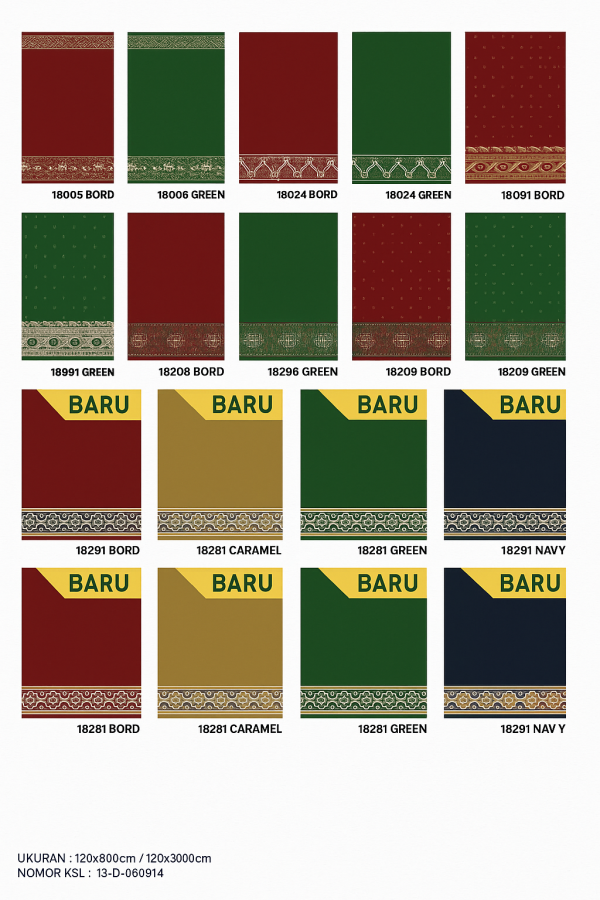 Sajadah Roll Iranshahr menghadirkan kenyamanan maksimal dan tampilan elegan di ruang ibadah. Ukuran 120 x 600 cm menjadikan barisan shalat lebih rapi dan nyaman. Ketebalan 16 mm memberi sensasi empuk saat sujud serta berdiri, sekaligus meredam tekanan lantai. Polypropylene berkualitas tinggi menjamin kekuatan, ketahanan, dan kemudahan perawatan. Warna hijau dan merah elegan menambah kesan megah di masjid maupun musholla. Motif sederhana namun modern menciptakan nuansa bersih, tenang, dan berkelas saat beribadah.