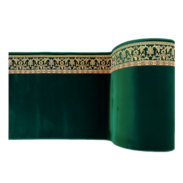 • Ukuran: 120 x 600 cm. Ukuran ini memastikan barisan shalat tetap rapi dan teratur.