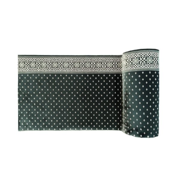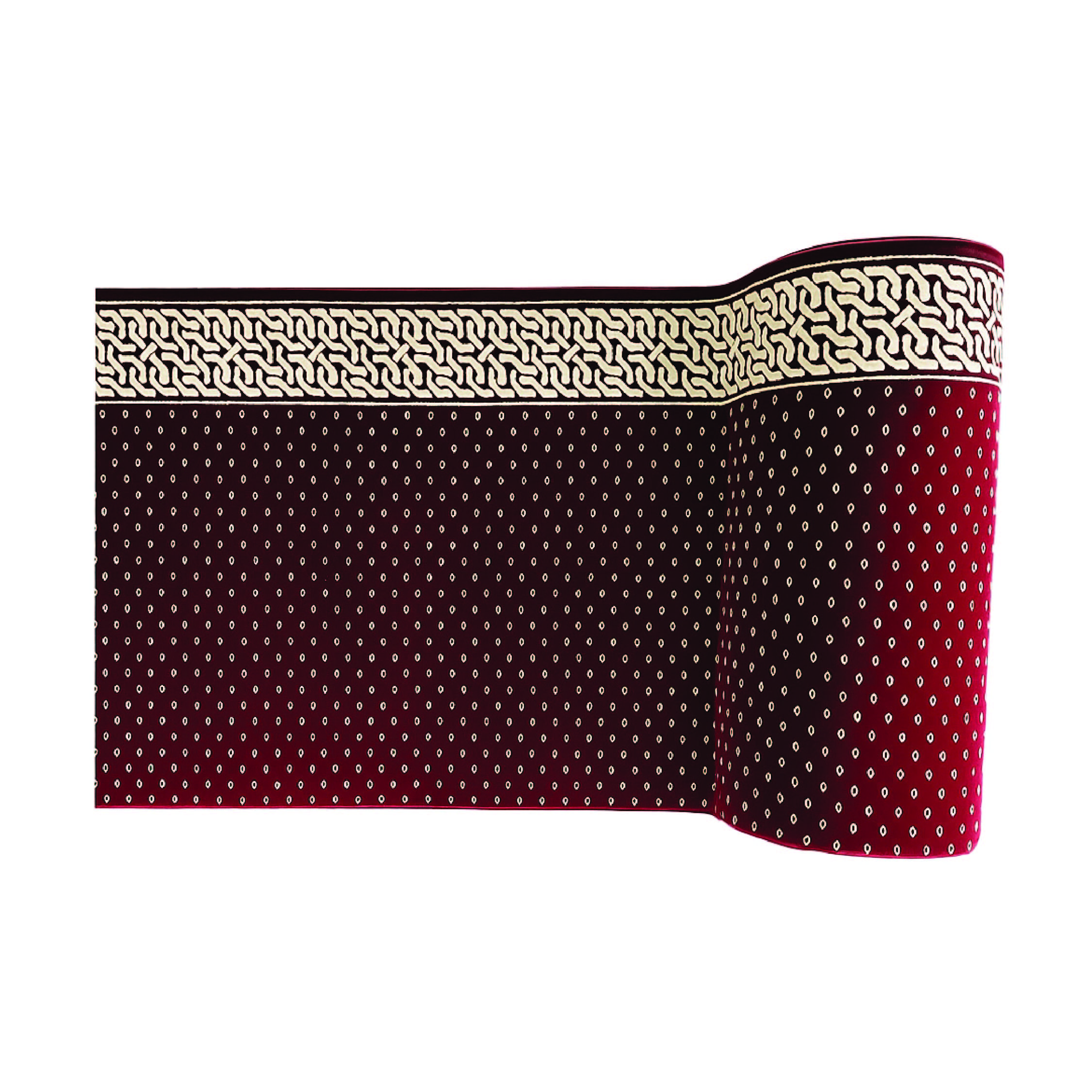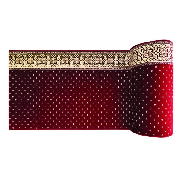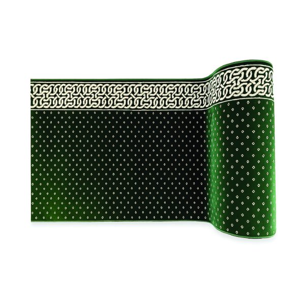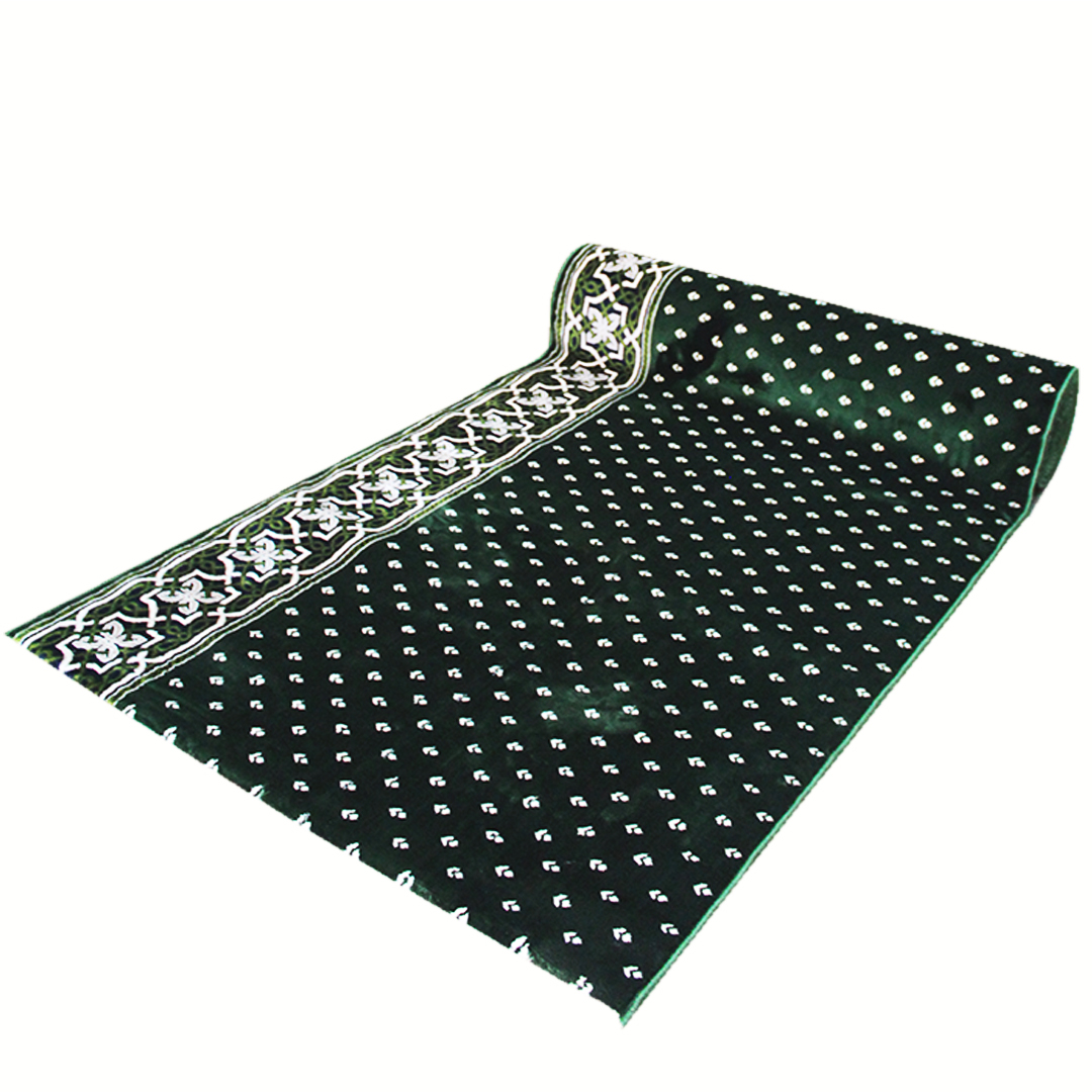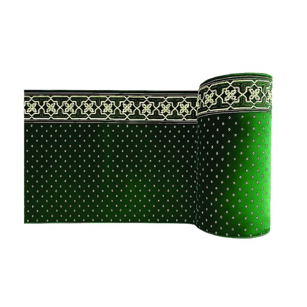 • Ukuran: 120 x 600 cm. Ukuran ini menjaga barisan shalat tetap rapi dan nyaman.