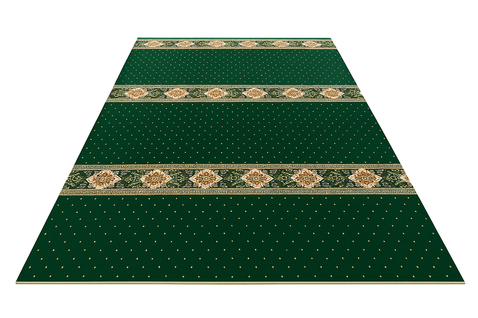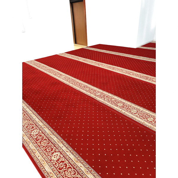 • Ukuran: 120 x 600 cm. Ukuran ini memungkinkan jamaah shalat berjamaah dengan barisan rapi dan teratur.